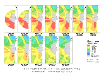 福島第一原子力発電所事故による放射性物質の拡散状況を継続的に調査するため、上空からの無人ヘリコプターを用いたモニタリングを実施し、地上測定調査及び航空機モニタリングデータの解析作業を行っております。