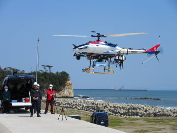 福島第一原子力発電所事故による放射性物質の拡散状況を継続的に調査するため、上空からの無人ヘリコプターを用いたモニタリングを実施し、地上測定調査及び航空機モニタリングデータの解析作業を行っております。