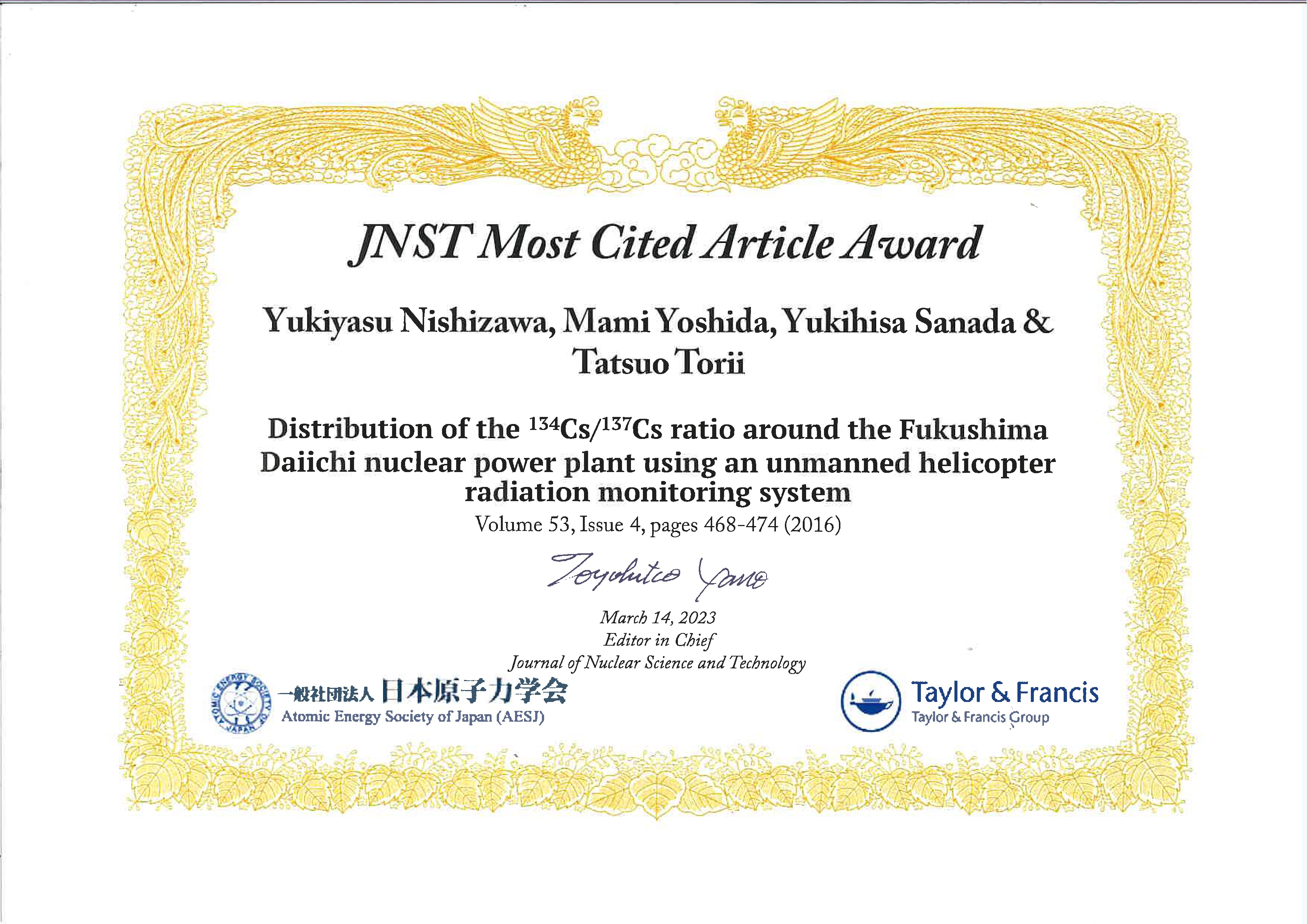 2023年3月、一般社団法人日本原子力学会において「The Journal of Nuclear Science and Technology Most Cited Article Award 2022」を受賞しました。