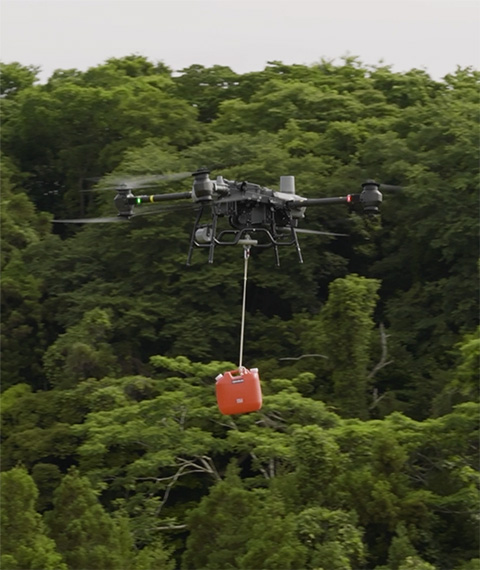 山岳地帯や林業現場、建設現場、また災害等で通常の物流ルートが使用不可能となった環境下における重量物の運搬について「運搬ドローン」の活用が期待されています。